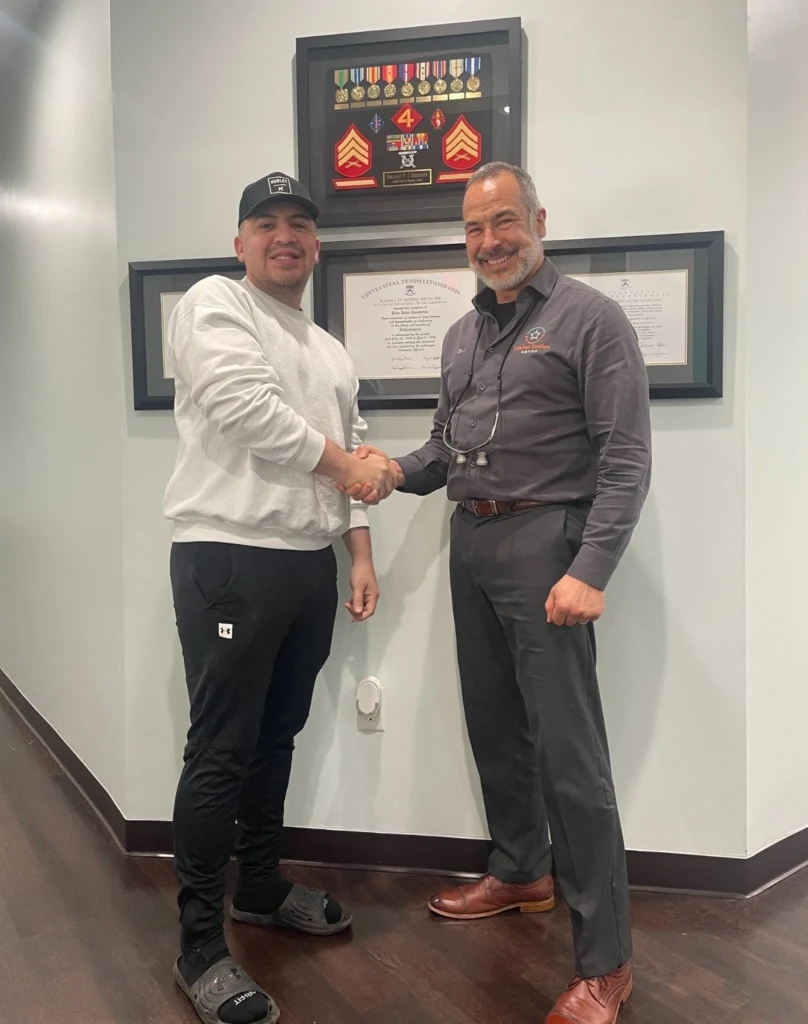 Our awesome patient, Christian, served in the U.S. Marine Corps and was stationed at Camp Lejeune, NC. Dr. J was also stationed there but at a different time. They were both enlisted and served with honor. And today Dr. J gave Christian a new smile by taking off his braces, by continuing the tradition of Marines Serving Marines. Semper Fidelis.