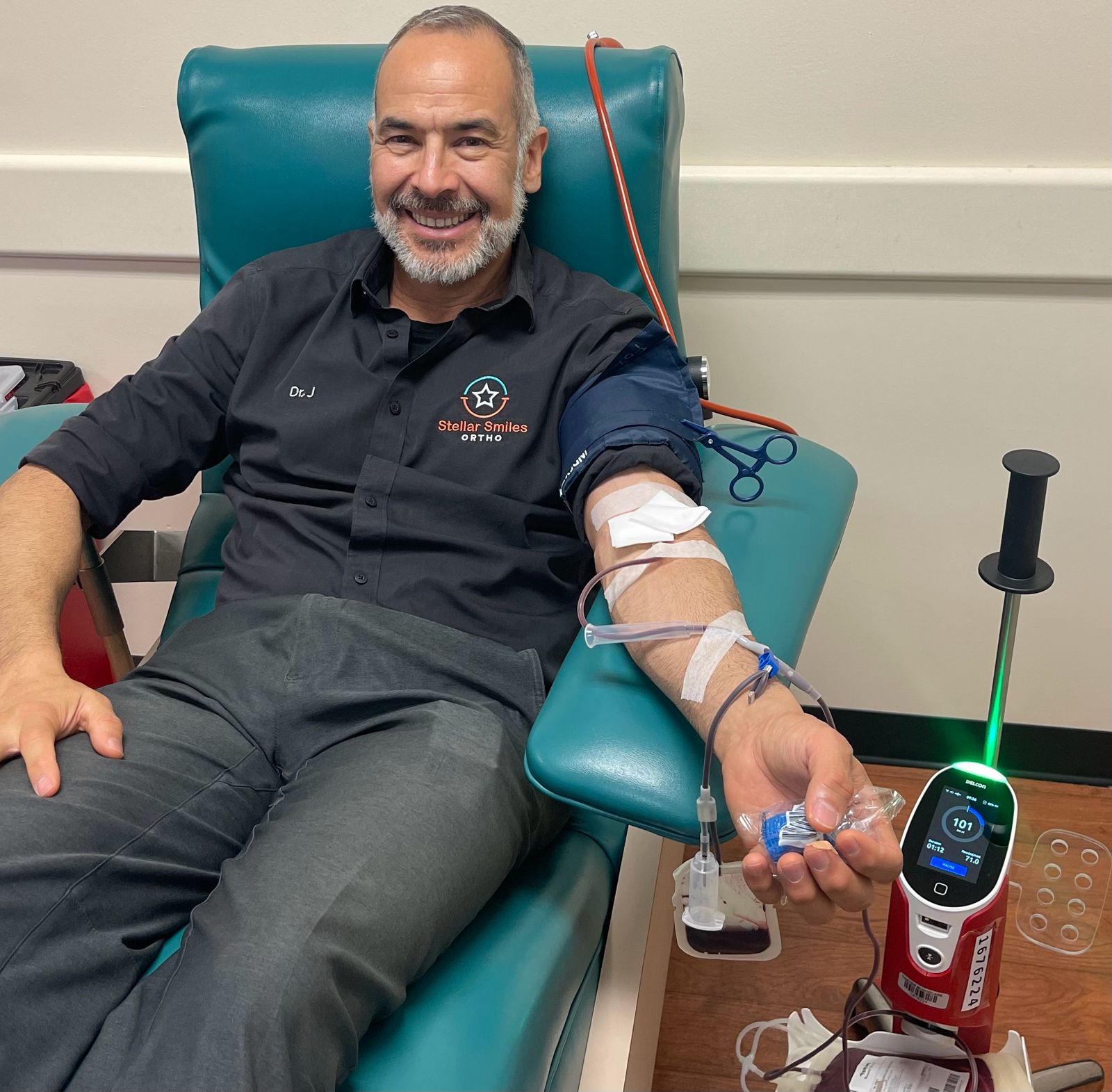 Dr. J, a local orthodontist and the proud owner of Stellar Smiles Ortho, recently rolled up his sleeve to give back in a meaningful way—by donating blood at Carter BloodCare.