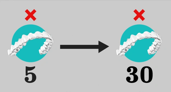 If your child lost #5 to #30, just go back to the last aligner they wore (say, #4), wear it for another week, and then come see us for a new scan to make a new set of aligners.